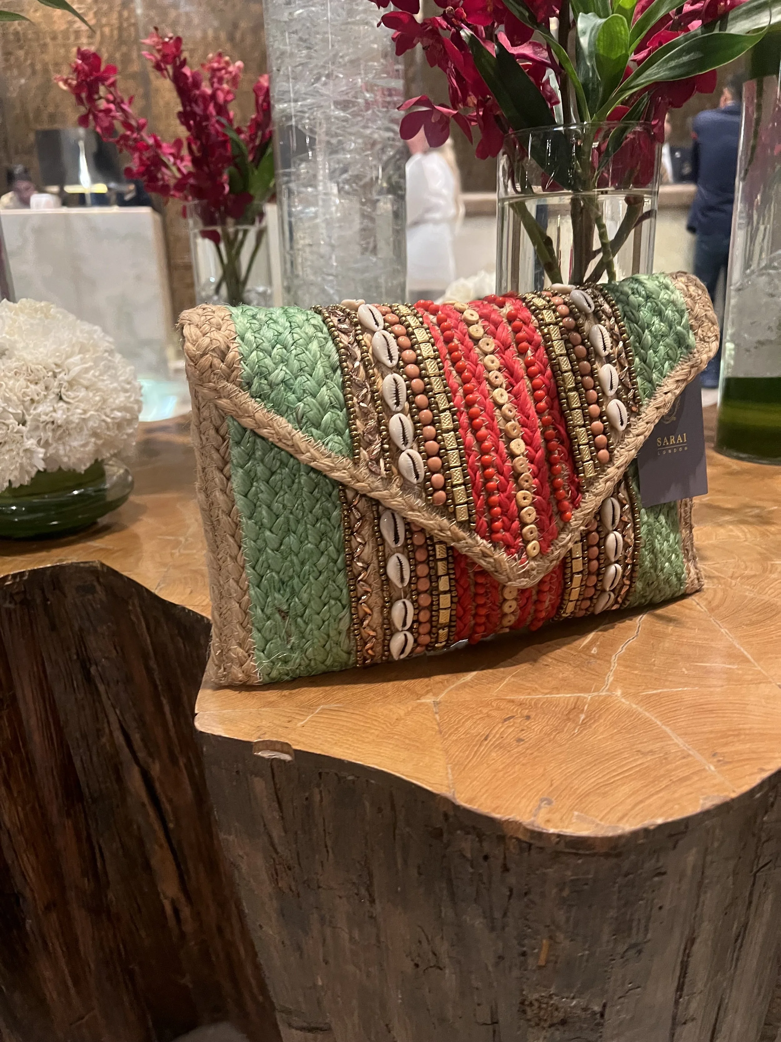 Our lightweight natural raffia clutch is waiting to be unleashed in the warmer weather. All hand crafted with incredible detail. Fully lined with Cotton lining. It also features a cross body strap for the more casual look. It’s secured by a magnetic stud fastenings at the front inside to protect your belongings. Beautiful handcrafted with vibrant colours..